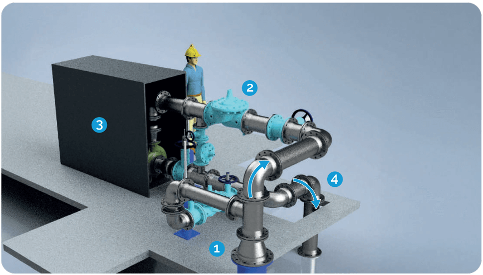 • 1 Raw water from the intake (5.5 bar)