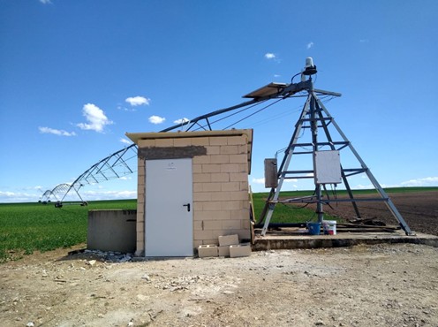 Como caso práctico, presentamos una turbina de 2,2 kW que aprovecha el exceso de presión que llega a un pivot de riego y produce la electricidad necesaria para alimentar los tres motores eléctricos que permiten la rotación del brazo del pivot.